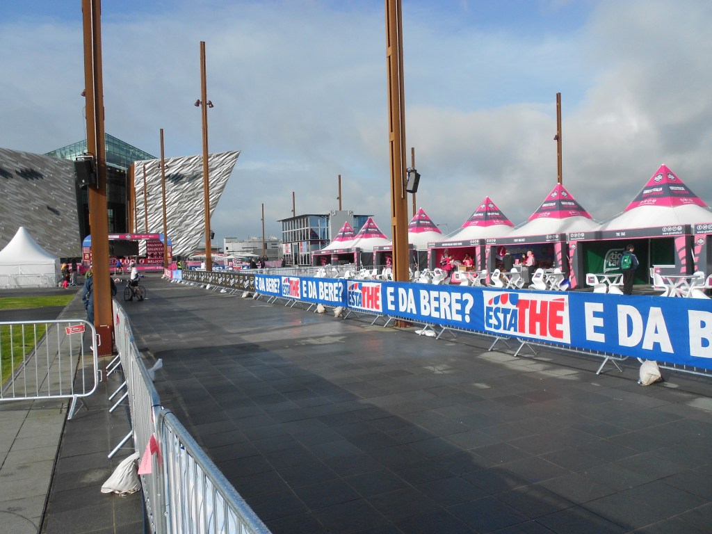 Sure isn’t Belfast lovely? At the Maritime Festival, May 2013Unidentified yellow craft, May 2013The Nomadic, which took people to the Titanic. Some amazing things appear in the Titanic Quarter, and then vanish. December 2013 I made it down early to watch the start of the Giro d’Italia cycle race in May 2014, but got the time wrong. Hence, no bikes.Titanic Belfast of course. January 2019