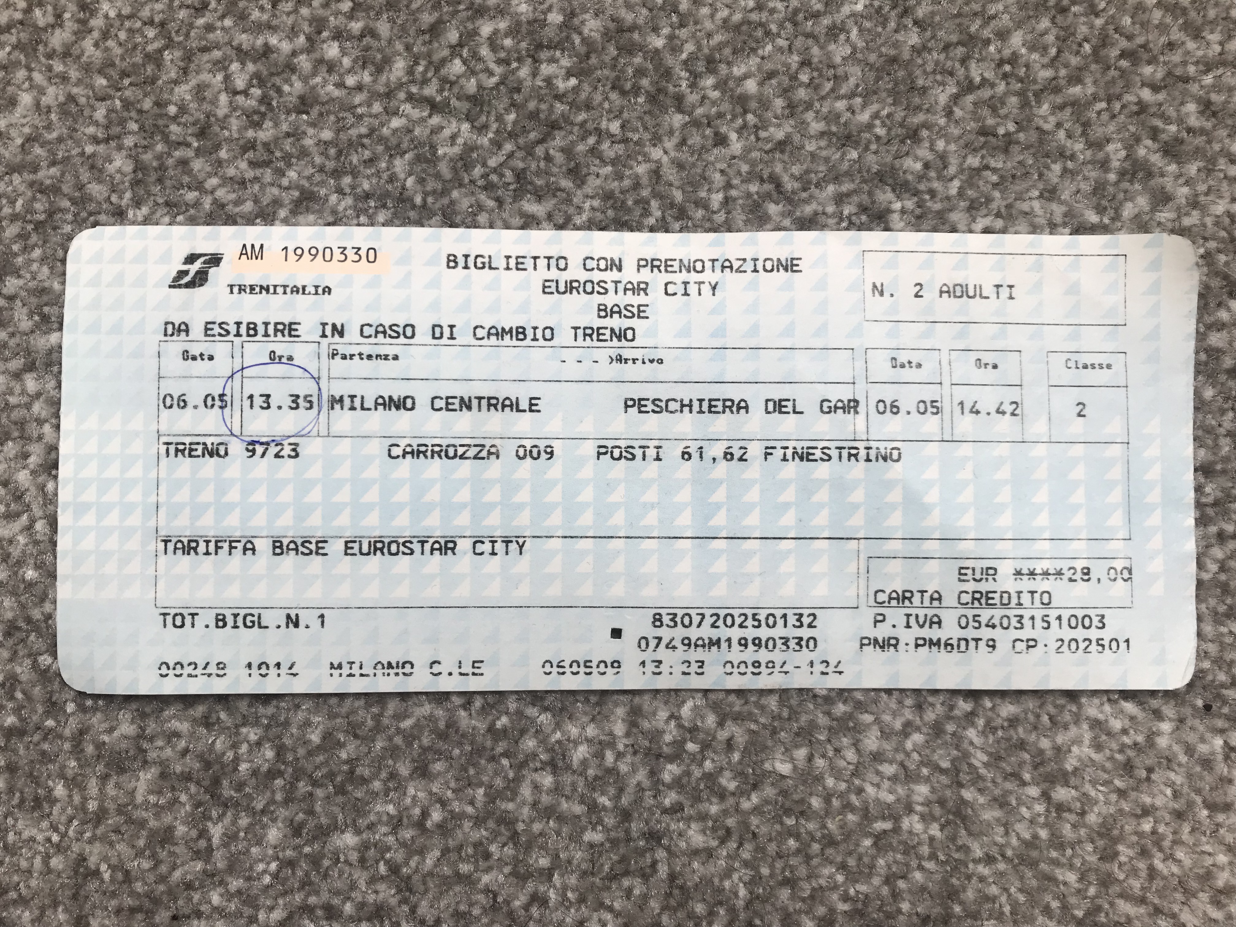 Or here’s a wonderful, gigantic airline-style train ticket from Italy. I wonder do you still get these?