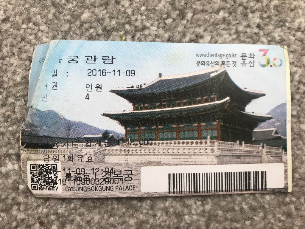 Hats off to the ticket designers who put at little effort in. It’s easy to just scrunch and toss them and ignore the fact that many tickets look terrific. How about this one, from a palace in Seoul?