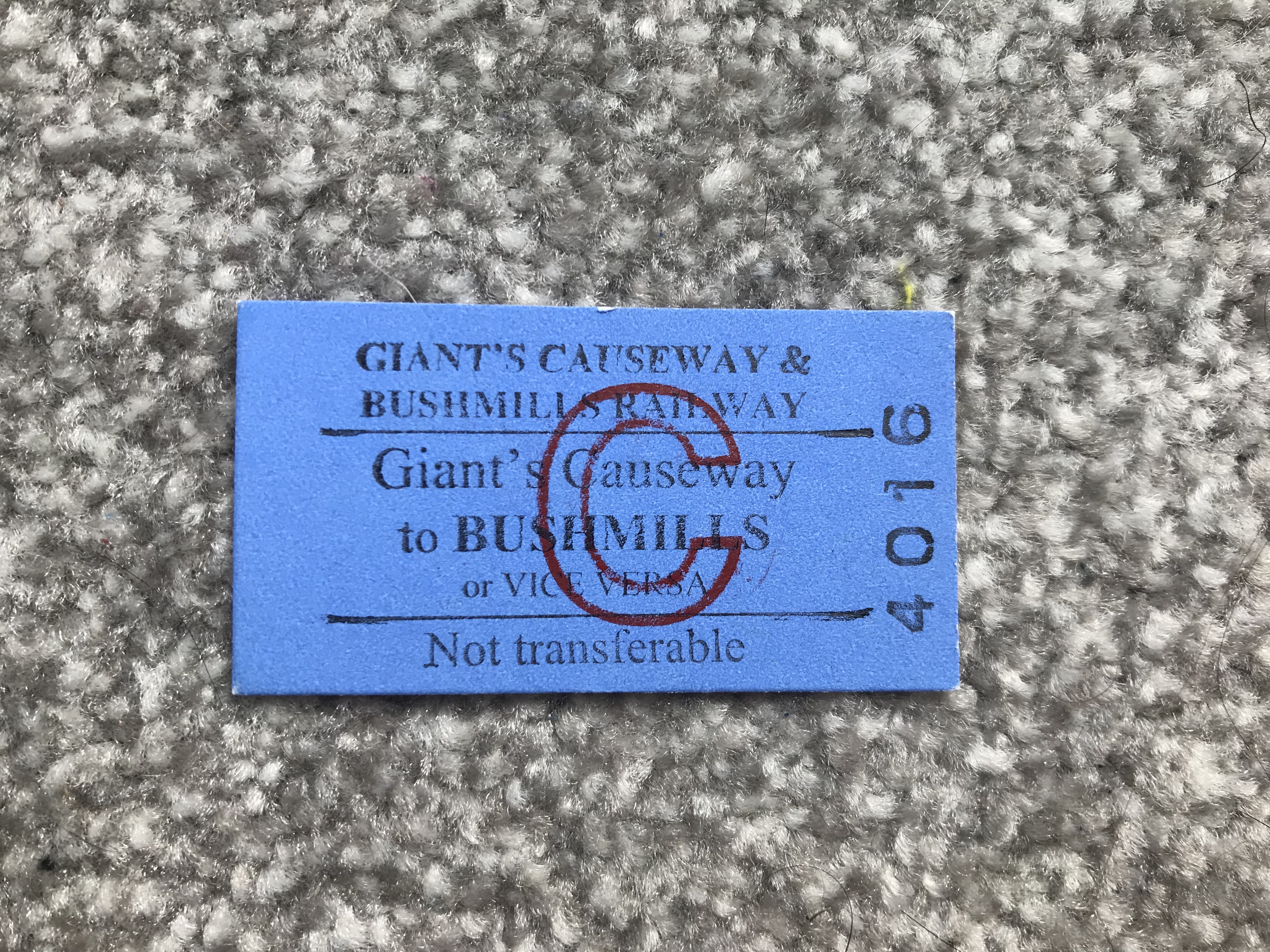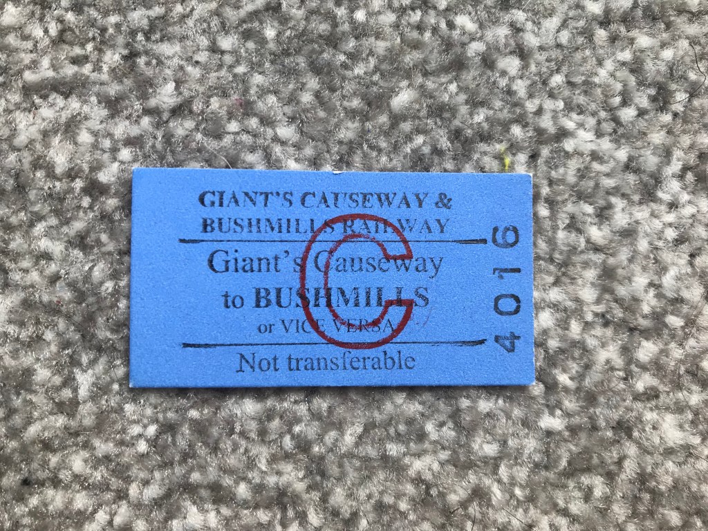 The stiffest ticket in my collection is this rock-hard rectangle from the heritage railway that runs between Bushmills and the Giant’s Causeway. A lovely item; no date sadly.