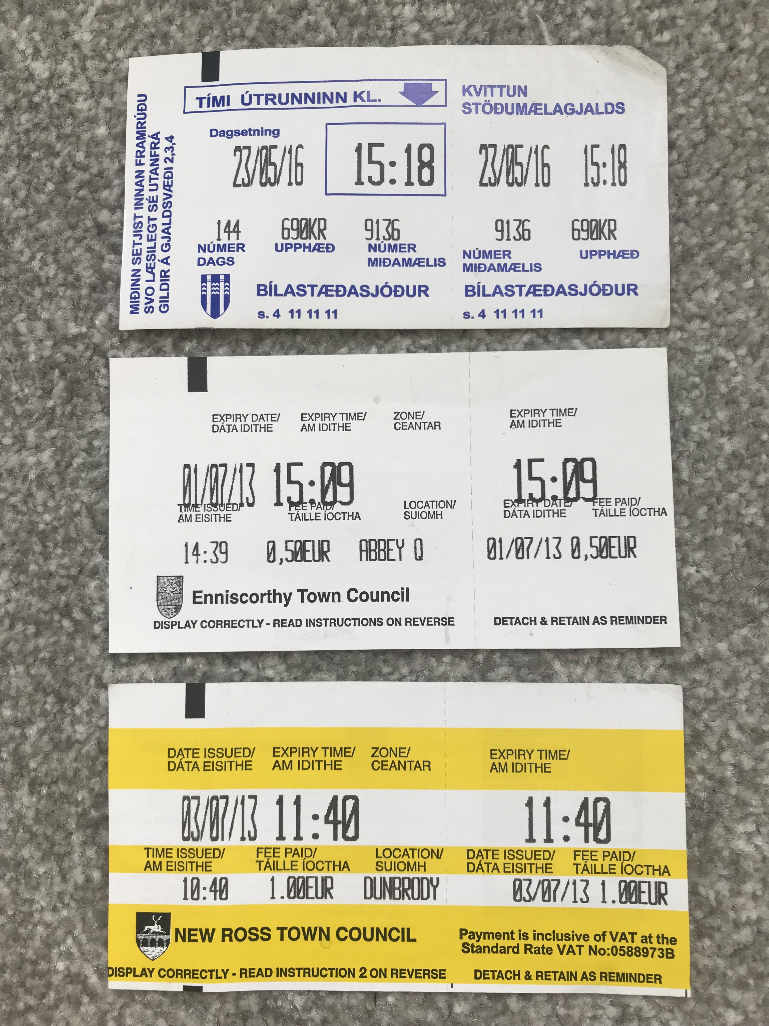 I’ve even kept some parking tickets from here and there, not because the parking was magical, but because they record the times and dates of one part of a bigger experience.